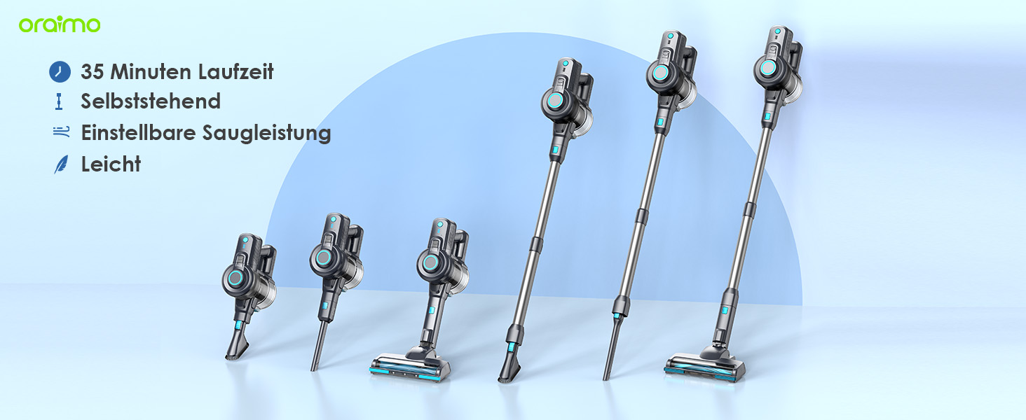 Oraimo Aspirator cu Acumulator, Aspirator fără Fir 6-în-1, Aspirator cu Staționare Automată, Rezervor de 800 ml, Aspirator fără Fir cu Acumulator Detașabil, Lumină LED, Aspirator de Mână pentru Pardoseli Dure, Covor, Plăci de Marmură, Păr de Animale