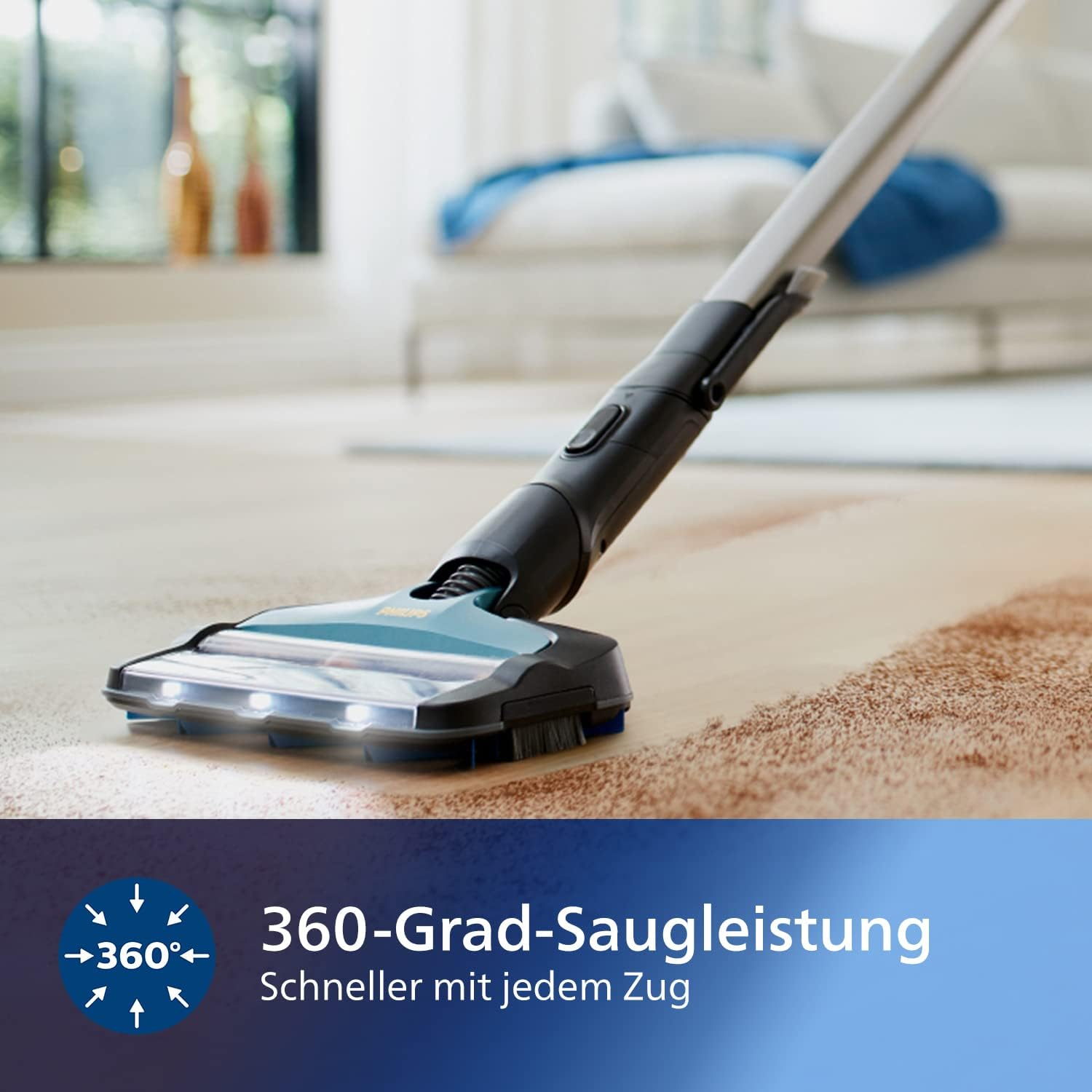 PHILIPS SERIES 8000 AQUA ESTE UN ASPIRATOR VERTICAL FĂRĂ FIR, 2-ÎN-1 (ASPIRARE + ȘTERGERE), IDEAL PENTRU CURĂȚENIA COMPLETĂ A LOCUINȚEI. CAPUL DE ASPIRARE CU DUZĂ 360° COLECTEAZĂ EFICIENT PRAFUL ȘI MURDĂRIA DIN TOATE DIRECȚII, IAR FUNCȚIA DE MOP INTEGRAT PERMITE ȘTERGEREA PODELELOR ÎN ACELAȘI TIMP. ESTE UȘOR, MANEVRABIL ȘI VERSATIL, PERFECT PENTRU APARTAMENTE, CASE ȘI SUPRAFEȚE DURE.